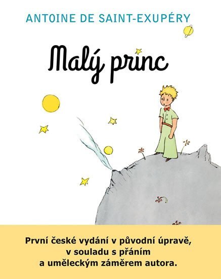 První české vydání v původní úpravě, v souladu s přáním a uměleckým záměrem autora Nové vydání jedné z nejoblíbenějších knih 20. století je prvním a doposud také jediným českým vydáním, které co možná nejpřesněji a nejvěrněji odráží prvotní podobu, v jaké Exupéryho dílo spatřilo světlo světa za autorova života. Vychází z prvního, newyorského vydání z roku 1943, jež představuje jediné zpracování, které vzniklo v součinnosti s autorem, které autor odsouhlasil a jež je plně v souladu s jeho přáním, celkovou grafickou a vizuální představou a uměleckým záměrem. Českému čtenáři se tak Malý princ poprvé dostává do rukou ve své původní úpravě, která mu umožní, aby v díle odkrýval nové významy, které mu dosud zůstávaly utajeny. Požadavku věrnosti původní autorově ideji a smyslu díla vychází vstříc i nový překlad. Námětem Exupéryho krátkého, zdánlivě prostého a přitom hlubokého textu je setkání s tajemnou postavou malého prince, který se znenadání zjeví letci havarovanému uprostřed pouště. Ušlechtilé „dítě“, které letci-vypravěči zprvu klade jakoby dětinské otázky, jež ho vyrušují od seriózních záležitostí, se brzy proměňuje v jeho průvodce po krajině citu a soucitu, zodpovědnosti a lásky. Exupéryho novela tak průzračným jazykem zachycuje úsilí o návrat k tomu nejpodstatnějšímu v našem životě. A jako by toto nejpodstatnější nebylo možné zpětně nalézt jinde než ve světě dětství, obrací se autor k dětem. Je to ale možná dítě v každém z nás, které oslovuje a k němuž promlouvá ve scénách, jež bychom se pro jejich nesmlouvavost někdy i mohli bát předložit svým skutečným dětem – tak jako v té, kdy se malý princ, aby věrně dostál citu a zodpovědnosti ke své květině, s vypravěčem, nyní už svým přítelem, navždy loučí. Nejsme to tedy spíš my dospělí, koho Exupéryho text upomíná, abychom, pro své děti i pro nás samé, to podstatné v sobě znovu nalezli a oživili?