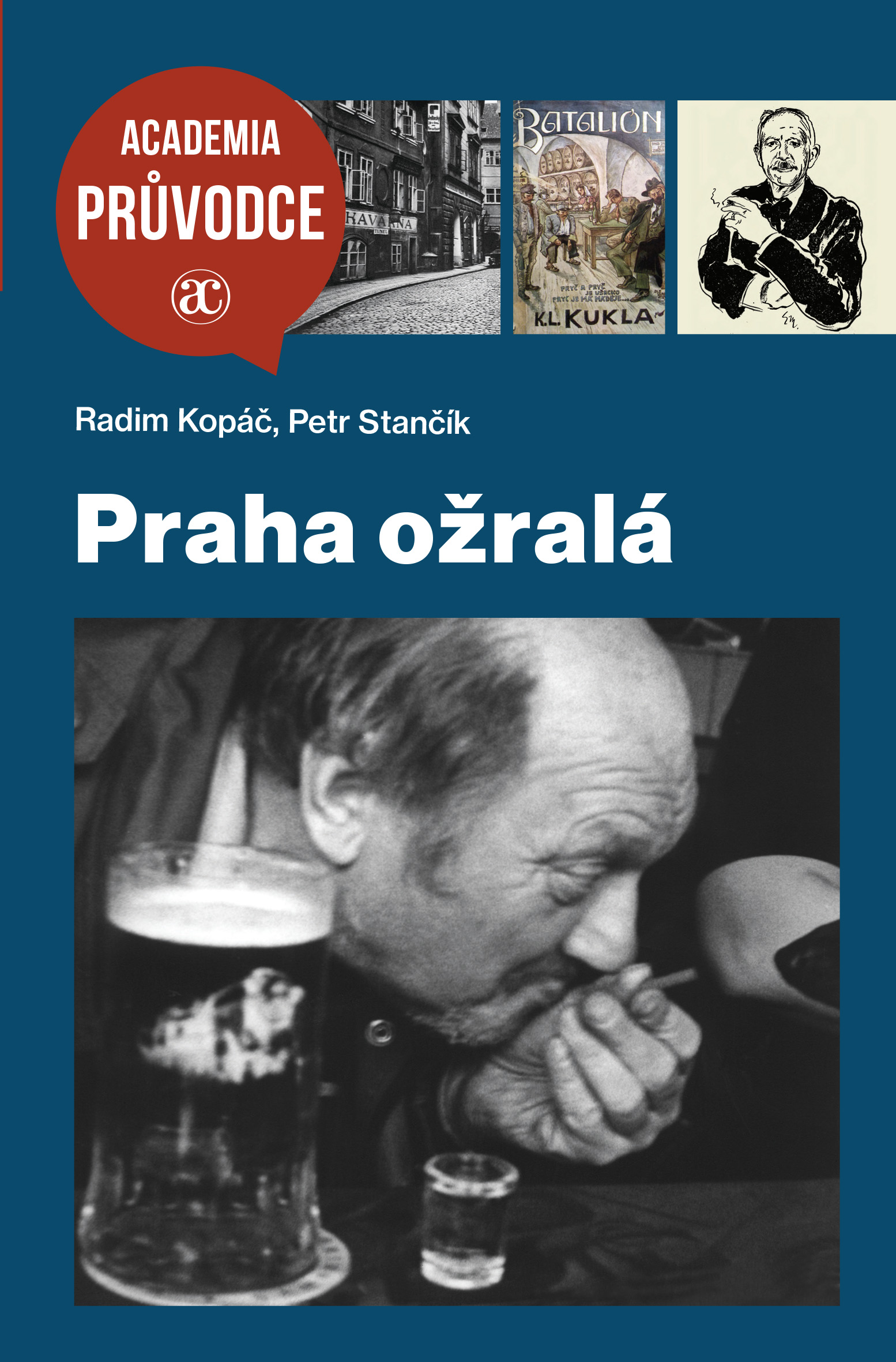 Obsáhlá kniha provádí čtenáře po hospodách a vinárnách staré i novější Prahy a přináší obrazy ze života i z literatury. Kdo, kdy, kde, co, s kým - a proč. Vycházka od pozdně středověké Jedové chýše, kde se za časů Egona Kische tančilo s mrtvolou, přes hospodu U Ježíška, v níž úřadoval Jan Neruda, až k dejvické nádražce, kde se při pivu holduje Miloši Frýbovi. Kniha je bohatě ilustrována z dobových pramenů i nejnovějšími fotografiemi.