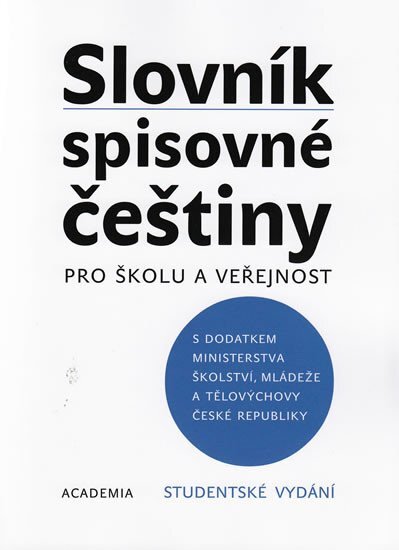 Slovník spisovné češtiny podává komplexní lexikografický popis téměř 50 000 slov současné češtiny, přihlíží k současnému vývoji jazyka i společnosti. Uživatel zde najde poučení o pravopise a výslovnosti slov, o jejich skloňování a časování, u přejatých slov i o jejich původu. Přílohy obsahují přehled o tvoření slov češtině, soupis rodných jmen a příjmení, zeměpisných jmen i běžných zkratek a značek. Pravopis a výslovnost slov, skloňování a časování, výklady slovních významů, synonyma, antonyma, homonyma, přehled tvoření slov v češtině, soupis rodných jmen a příjmení, nejužívanější zeměpisná jména, běžné zkratky a značky.